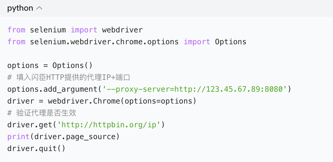 Q3:如何快速集成闪臣 HTTP 的 IP 池到 Selenium 脚本?
